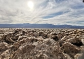 Weiter ging es über den Artist’s Drive, welcher prall gefüllt mit von der Natur gemalter Gemälde ist, zum Badwater Basin, dem tiefsten und heißesten Punkt von Nordamerika. Der Hals trocknet schon nach wenigen Schritten aus und die verkrustete Salzoberfläche gibt einen Eindruck davon, was dem eigenen Körper bei einem längeren Spaziergang ohne Wasser bevorstünde. Verbunden mit der nur durch das ein oder andere Auto gestörten Ruhe ist es hier einfach beeindruckend – insbesondere nach kleinen Abstechern über die nicht mehr asphaltierten Seitenstraßen ist man plötzlich völlig für sich, hört absolut nichts und sollte lediglich auf hier beheimatete Klapperschlangen achten.